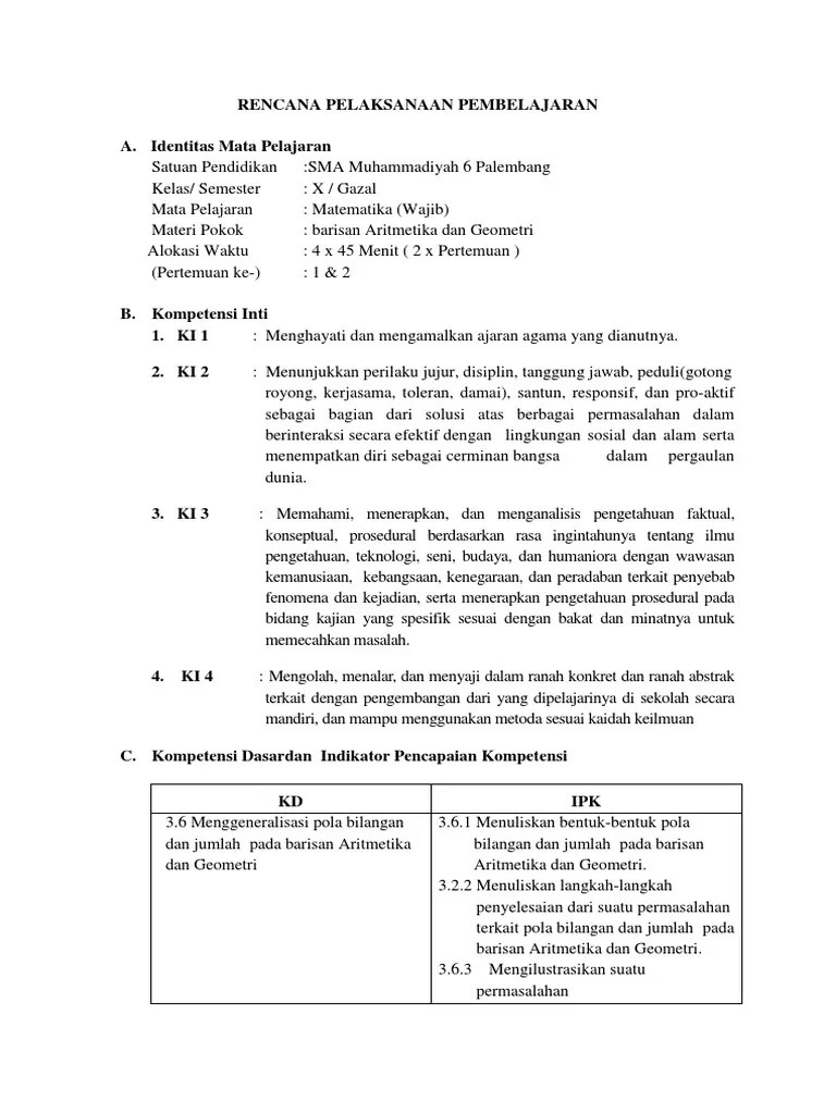 Rpp Barisan Dan Deret Aritmatika Kurikulum 2013 Doc - Rpp Matematika Sma Barisan Dan Deret Kurikulum 2013 / 13.3 menerapkan konsep barisan dan deret geometri.